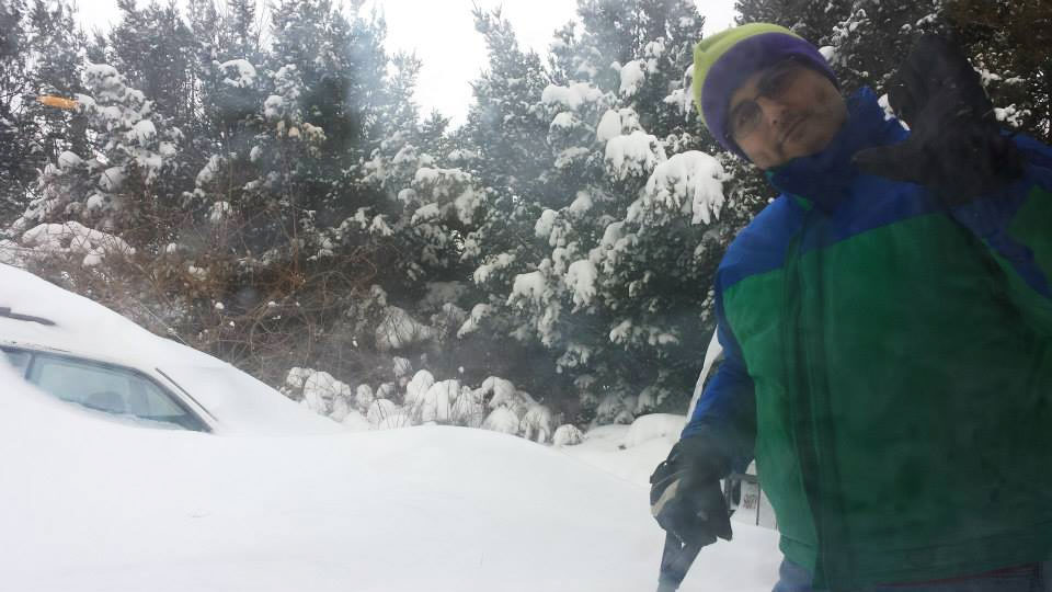 Yes, that is a Subaru Outback buried in snow in the background of Chris's smiling face..